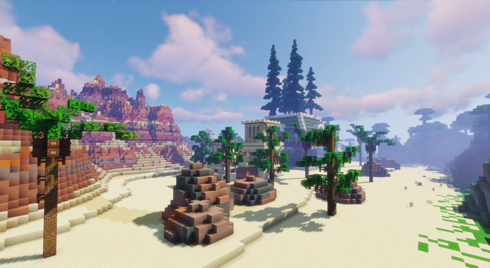 Вокруг него расположены деревни, руины и скрытые тропы, побуждающие к исследованию. Карта хорошо подходит для выживания, ролевых игр и сюжетных приключений, позволяя создать собственную историю в пустынном королевстве.