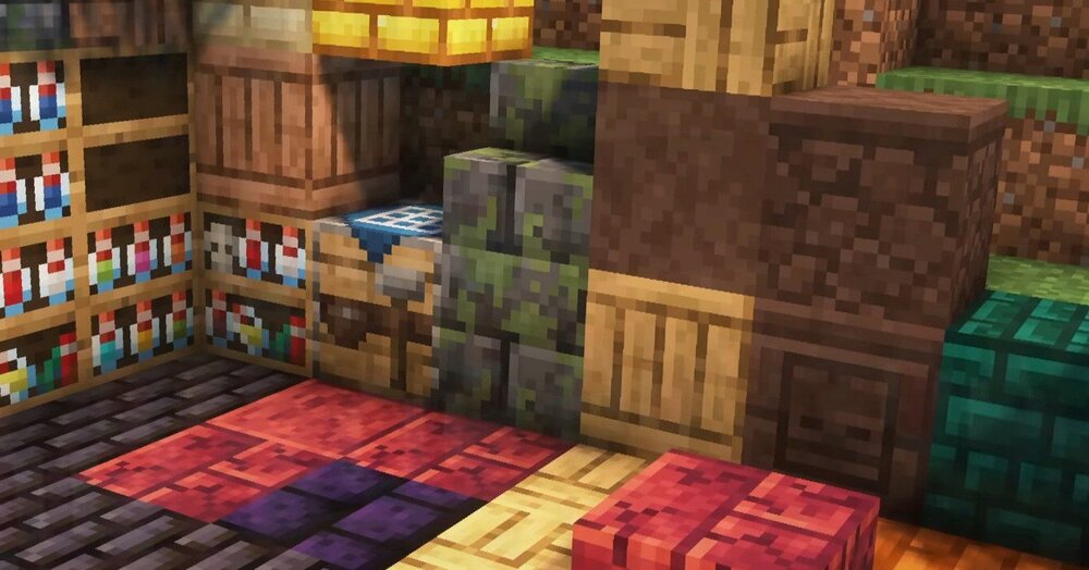 Отдельного внимания заслуживают песчаниковые блоки, идеально подходящие для храмов и монументальных сооружений, а также декоративные полки, органично дополняющие библиотеки и алхимические комнаты. Сера и золотые кирпичи добавляют выразительных материалов для Нижнего мира и необычных построек.