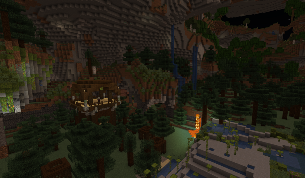 Здесь есть всё — от густых биомов до мощных рудных жил, уходящих глубоко в камень. Некоторые структуры формируются прямо на потолке из коренной породы, создавая ощущение замкнутого, но живого мира. Исследуя эти просторы, вы столкнётесь с совершенно иным восприятием выживания: ресурсы редки, свет — драгоценность, а каждая пещера скрывает тайну.