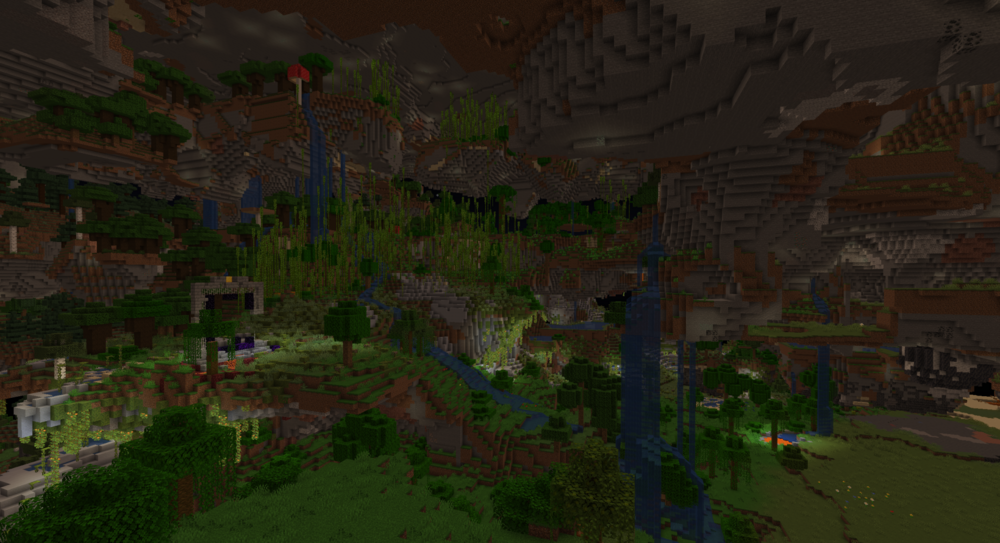 Майнкрафт с модом Better Cave Worlds превращается в совершенно иной опыт: теперь весь мир может существовать под землёй. Вместо привычных равнин и гор игрока окружают огромные пещерные системы, освещённые грибами, листвой и светящимися водоносными слоями.