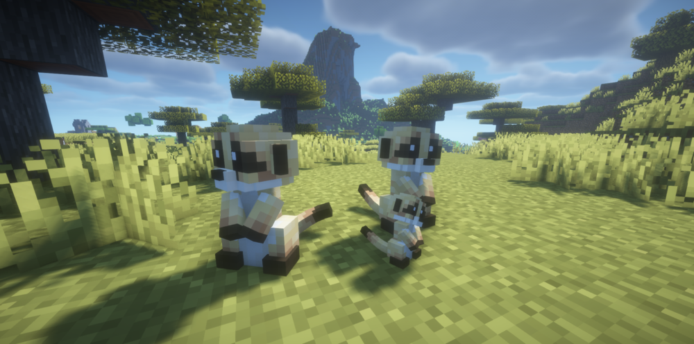 Приручите сурикатов в игре, используя мод Animal Garden Meerkat для Майнкрафт. Теперь любой желающий сможет взаимодействовать с этими существами, кормить их, перемещаться по биомам. Если сурикат видит опасность перед собой или же получает урон, в том числе и от игроков, сразу же убегает. Внешне выглядят обалденно, красиво.
