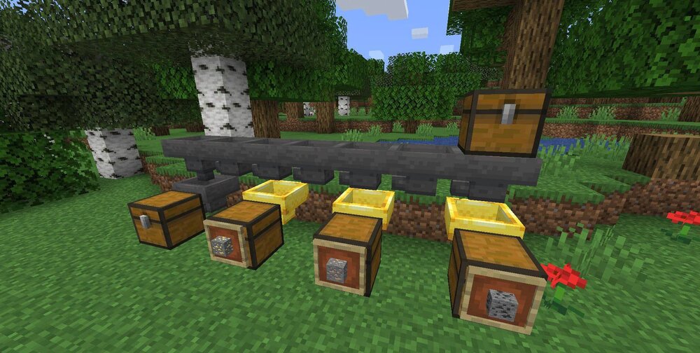 Для настройки требуется сам предмет, а не абстрактный шаблон, что делает механику наглядной и понятной. Мод не перегружает игру дополнительными интерфейсами, сохраняя ощущение оригинального Майнкрафта, но при этом значительно упрощает сортировку ресурсов.