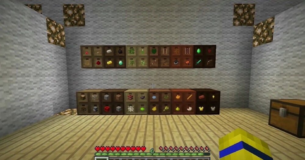 Когда обычные сундуки перестают справляться, Storage Drawers предлагает компактное и наглядное решение. Ящики позволяют хранить огромные объёмы одного типа предметов, при этом взаимодействие происходит прямо из мира, без постоянного открытия интерфейсов. Визуально всегда видно, что и в каком количестве хранится, а встроенные улучшения позволяют настраивать вместимость и поведение хранилища.
