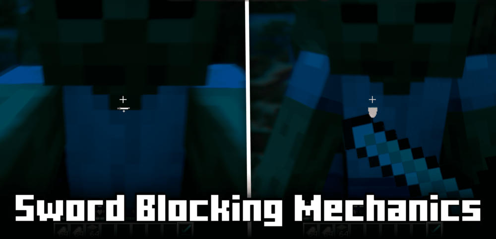 Боевая система Майнкрафта со временем изменилась, но Sword Blocking Mechanics возвращает одну из самых узнаваемых механик прошлых версий — блокирование урона мечом. Теперь игрок может реагировать на атаки мгновенно, не переключаясь на щит, просто используя правую кнопку мыши. При успешном блоке снижается часть входящего урона, что делает сражения более динамичными и реактивными.