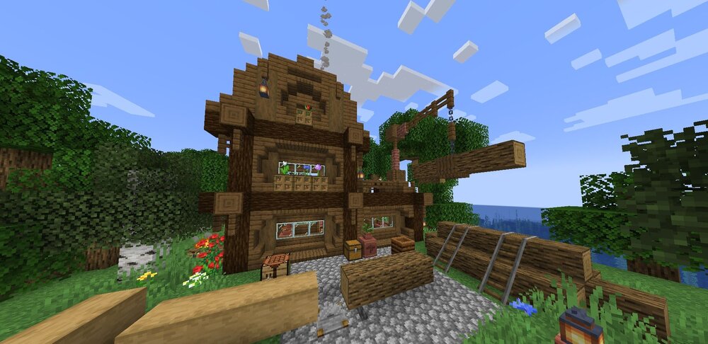 Sawmill House дополняет генерацию мира атмосферным и функциональным строением, которое органично вписывается в лесные биомы. Дом-лесопилка выглядит как логичное поселение, а не случайная структура, благодаря продуманной архитектуре и деталям оформления.