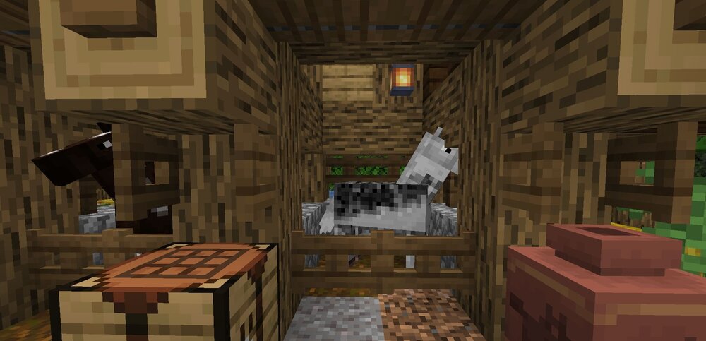 Конюшня выглядит органично, словно часть живого мира, а не случайная структура. Даже оформление и размещение блоков в ней продумано, чтобы подчеркнуть атмосферу заботы о животных. Мод преобразует процесс приручения и содержания лошадей в целую мини-экосистему!