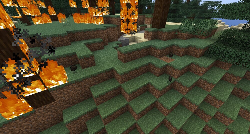 Мод органично вписывается в выживание: вы можете намеренно создавать уголь прямо в мире, не прибегая к печи. Модификация делает поведение огня чуть реалистичнее и добавляет новые возможности без перегрузки механик.