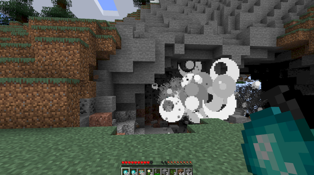 Когда обычная кирка кажется слишком медленной, на помощь приходит Blast. Мод добавляет набор метательных бомб с разной силой и особенностями поведения. Железные версии подходят для точечной добычи, золотые усиливают дроп благодаря эффекту, аналогичному Fortune III, а ударные бомбы детонируют при соприкосновении. Предметы, разрушенные взрывом, не исчезают, что делает добычу выгодной и контролируемой.