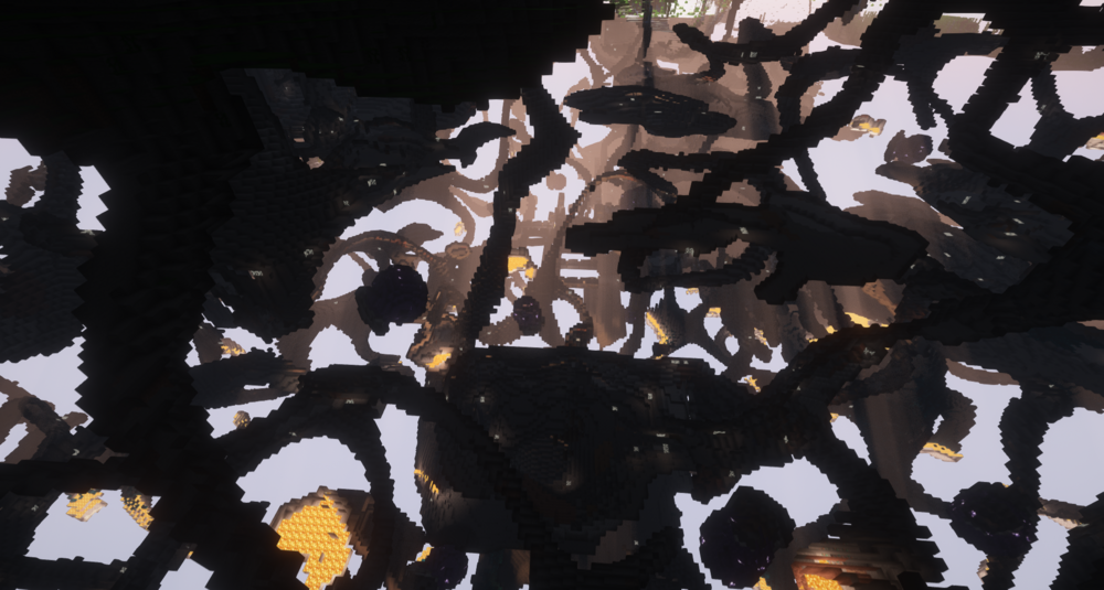 Исследование подземного мира — одна из самых интересных частей игры. Мод Caves and Canyons значительно улучшает генерацию ландшафта, добавляя более масштабные и впечатляющие природные образования. Одним из главных нововведений становятся огромные каньоны. Вместо небольших трещин в земле игрок может обнаружить глубокие разломы, уходящие вниз до уровней примерно около -20.