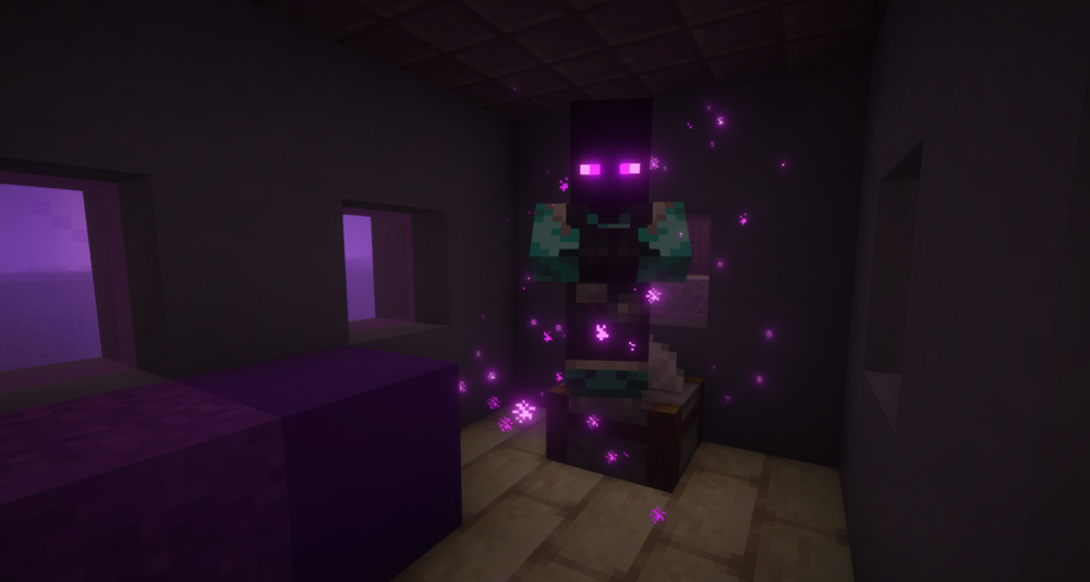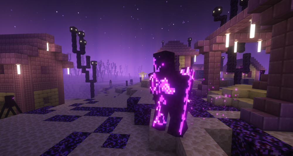 Вместо обычных поселений игрок получает атмосферные постройки из энд-блоков, новые ремёсла, торговлю особыми культурами и необычные зелья, включая телепортацию и заморозку. Особенно интересно выглядят жители в эндер-стиле, их детёныши, кошки Края и новые големы, заменяющие железных стражей.