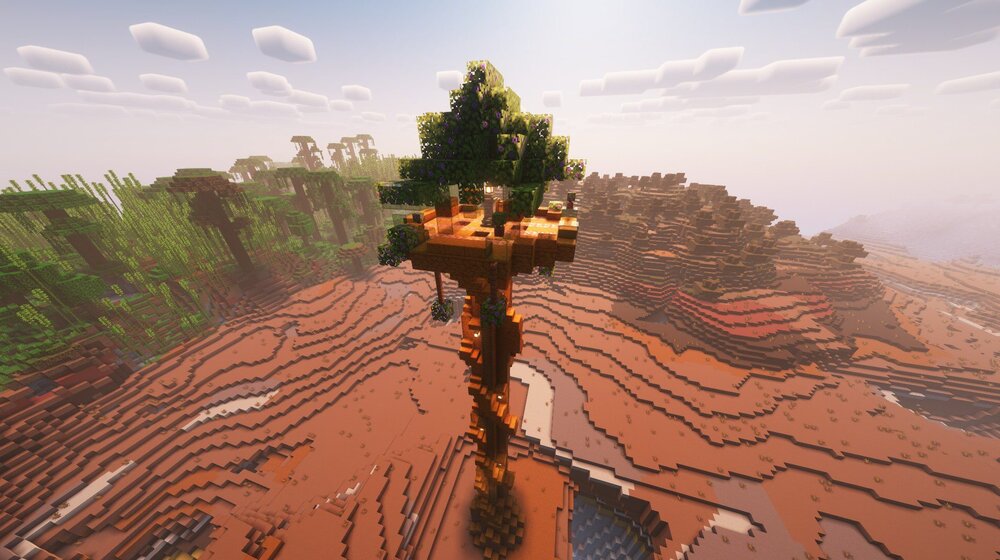 Исследование мира становится интереснее, когда на горизонте появляются высокие башни из Towers of the Wild Modded. Этот мод добавляет в генерацию особые сооружения, которые сразу привлекают внимание и превращают обычное путешествие в небольшое приключение. Подъём на вершину здесь всегда ощущается наградой, ведь наверху игрока ждут путевой камень и сундук с полезной добычей, среди которой особенно выделяется параплан.