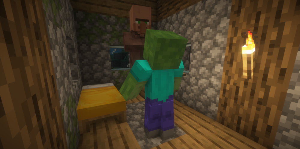 В Villager Converting нет лишней сложности, но есть очень важная практическая польза. Мод гарантирует, что житель деревни, атакованный зомби, не погибнет окончательно, а превратится в зомби-жителя.