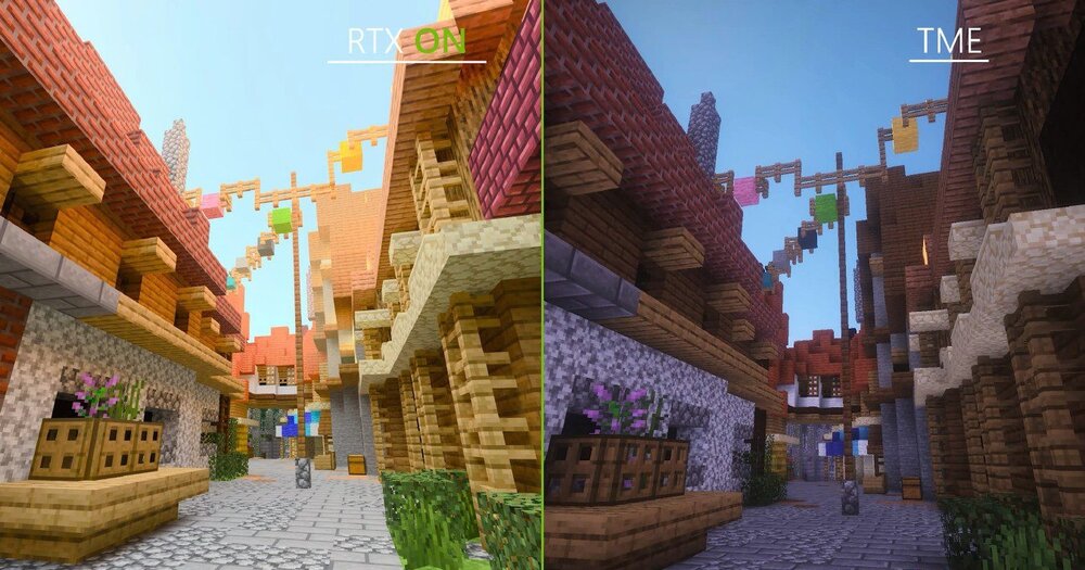 TME Shaders ориентирован на игроков, которые хотят превратить свой мир в эффектную визуальную витрину. Этот шейдер-пак создавался с расчётом на создание красивых пейзажей, насыщенных биомов и выразительных скриншотов. Детализация окружающей среды здесь выходит на первый план: растительность выглядит объёмной и живой, ландшафты приобретают глубину, а освещение подчёркивает форму каждого блока.