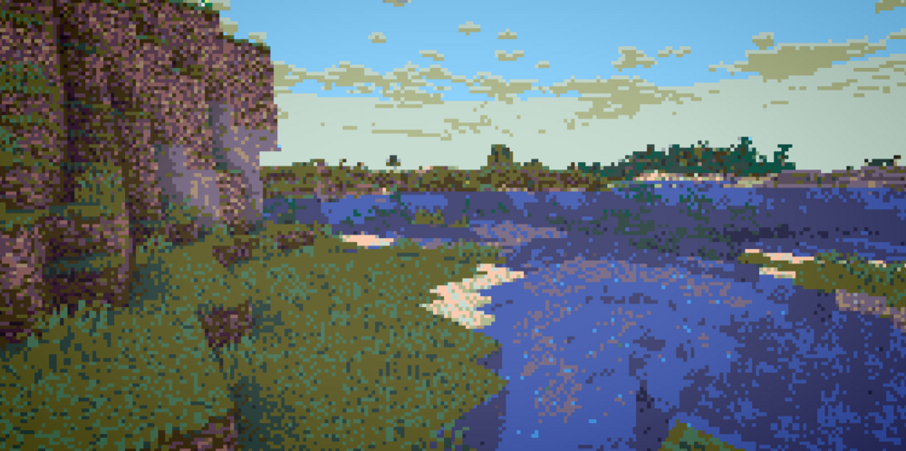 Визуальный стиль ретро-аркады раскрывается особенно ярко, когда активируются Phial Shaders. Этот пакет целиком построен вокруг постобработки и намеренно «искажает» изображение, превращая его в стилизацию под старые пиксельные проекты. Ограничение цветовой палитры через квантование создаёт характерную ступенчатость оттенков, а дизеринг добавляет зернистую структуру, имитируя низкую глубину цвета.