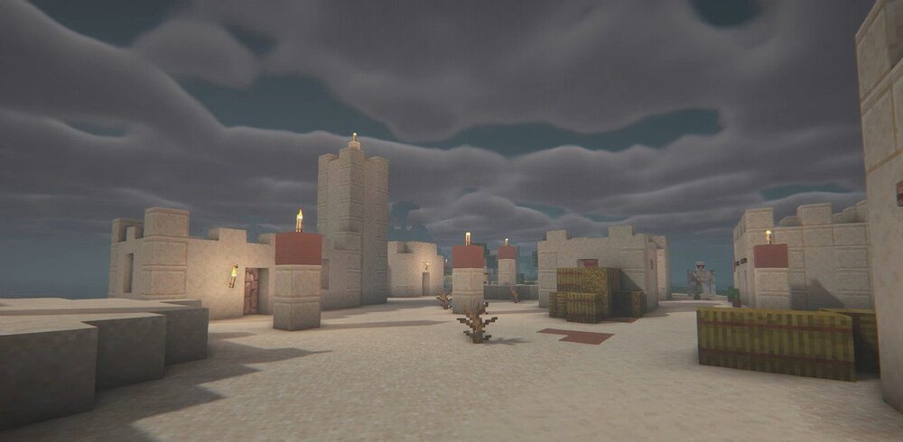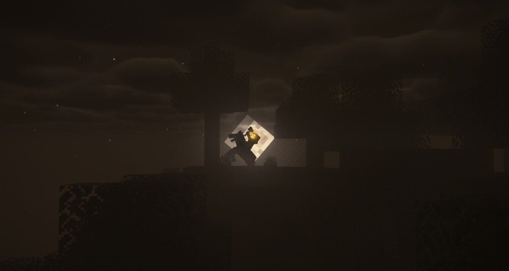 Освещение здесь воспринимается не как украшение, а как инструмент напряжения: тени становятся важной частью сцены, привычные локации выглядят более зловеще, а сама прогулка по миру ощущается гораздо менее безопасной. Шейдер раскрывается в сочетании с жуткими картами, тёмными постройками и общей хоррор-стилистикой прохождения, когда важна не яркая картинка, а постоянное чувство дискомфорта и ожидание опасности.