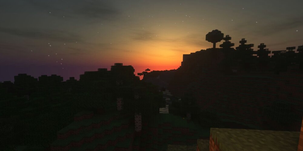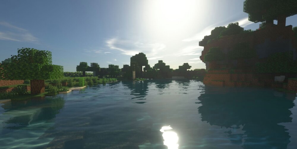 Атмосферное рассеяние влияет не только на цвет солнечных лучей, но и на общее восприятие неба, горизонта и масштаба пространства, благодаря чему мир выглядит гораздо убедительнее. Заметно переработаны дневной и ночной цикл, подводная сцена, тени, облака и дождевые эффекты. Дополнительную глубину создают SSAO, улучшенный GI, сглаживание, контактные тени и физически основанные блики от солнечного света. Даже витражи, Nether и End здесь получают отдельное внимание.