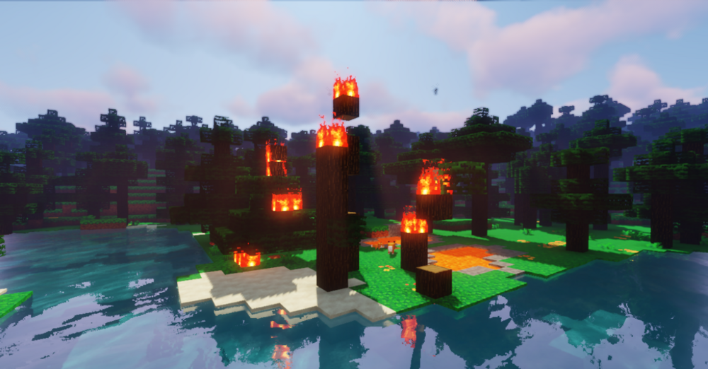 Яркая палитра, мягкие тени и насыщенные тона — всё это делает Bloom одним из самых жизнерадостных паков. Даже при низком разрешении 16×16 текстуры выглядят аккуратно, а благодаря 64-цветной палитре создаётся приятный мультяшный эффект. Деревья приобретают пушистый силуэт, трава становится более аккуратной, а цветы — выразительными.