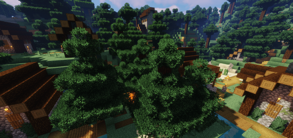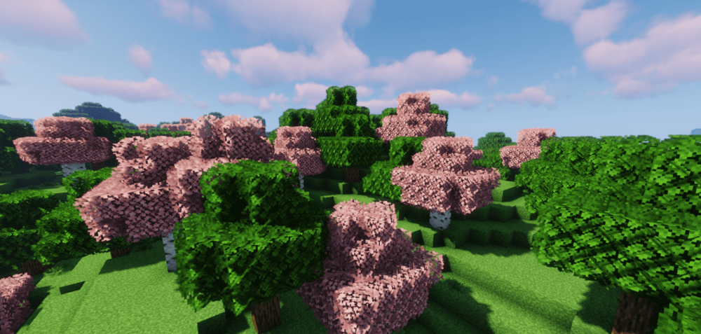 Этот набор делает растительность насыщенной, более плотной и естественной. Первое, что бросается в глаза в All Natural, — изменённые листья: они становятся гуще и объёмнее, а берёзы неожиданно приобретают розовые оттенки, напоминая цветущую сакуру. В тропических биомах обновляются лианы и бамбук — они выглядят толще, что делает джунгли особенно атмосферными.