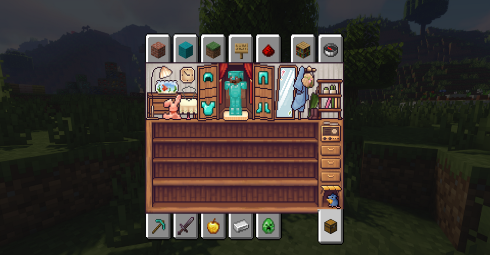 Интерфейс в Майнкрафт редко становится объектом внимания, но Bloom & Serenity UI легко меняет это восприятие. Вместо резких контрастов и привычной строгости игрок получает спокойную, почти медитативную атмосферу. Пастельные оттенки, плавные градиенты и округлые формы делают меню, инвентарь и HUD визуально мягче, не перегружая экран.
