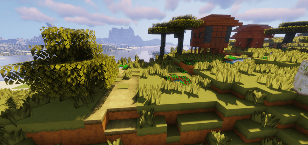 Beyond Of Blossom делает упор на обновление базовых блоков, с которыми игрок сталкивается постоянно. Использование карт нормалей и бликов заметно повышает уровень реализма: поверхность камня, земли и травы выглядит более глубокой и «осязаемой». Все текстуры созданы с нуля, благодаря чему мир ощущается свежим и обновлённым.