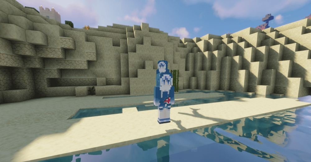 С установкой Gawr Gura визуальное настроение игры заметно меняется. Игра начинает восприниматься более лёгкой и игривой, словно привычный мир приобрёл характер яркой мультяшной вселенной. Текстуры выполнены в насыщенных оттенках, а стилизованные детали сразу привлекают внимание и выделяются на фоне классического окружения.