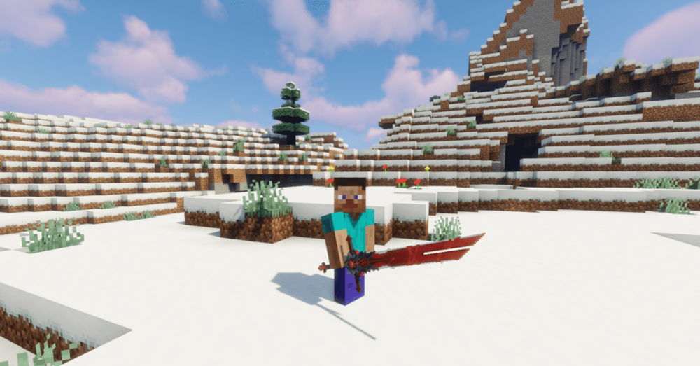 Для игроков, которые ценят визуально мощное оружие, Wolf’s Gravestone станет отличным дополнением. Этот ресурспак позволяет заменить внешний вид любого меча на внушительную и выразительную модель с глубокими красными оттенками. Процесс активации максимально прост: достаточно переименовать меч на наковальне, после чего он мгновенно преобразится.