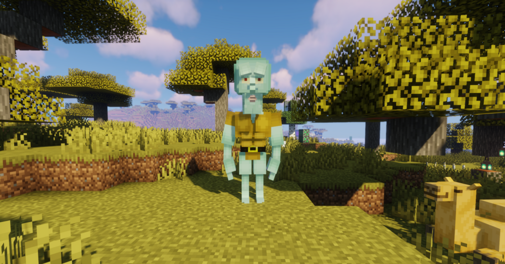 Handsome Squidward — это небольшой, но очень запоминающийся ресурс-пак для тех, кто любит, когда Майнкрафт умеет не только удивлять, но и смешить. Он заменяет привычного железного голема на комично-стилизованную версию знакомого образа, из-за чего даже обычная прогулка по деревне начинает восприниматься совсем иначе.