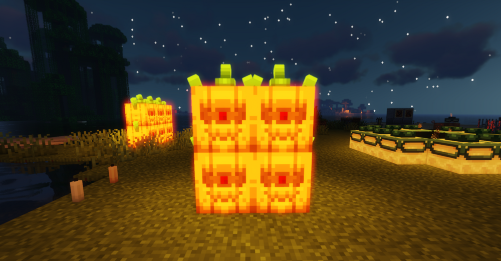 Ресурс-пак раскрывается в тёмных локациях, хэллоуинских постройках, заброшенных домах, кладбищах, лесных тропах и любых местах, где важен тревожный визуальный акцент. Даже несколько таких тыкв могут резко изменить настроение сцены и сделать окружение более напряжённым. Пакет остаётся достаточно локальным: он не требует полной хоррор-переработки текстур, чтобы быть полезным.