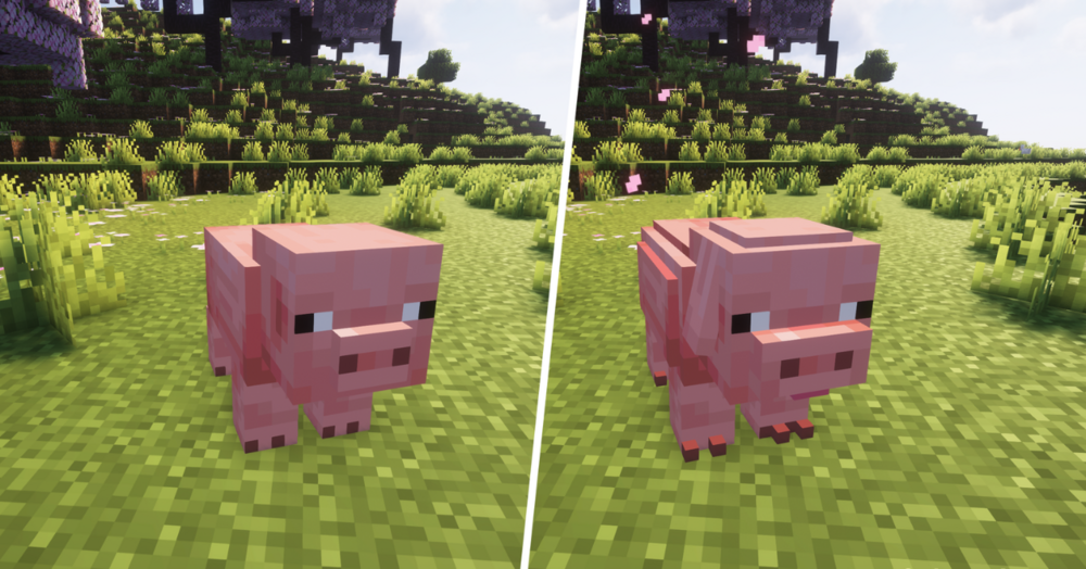 При этом пакет сохраняет угловатую основу игры и не пытается насильно превратить её в фотореализм. Именно поэтому изменения воспринимаются органично: животные выглядят детальнее, но всё ещё естественно существуют внутри привычного кубического мира. После установки пака фермы, деревни, лесные участки и домашние постройки заметно оживают, потому что их население перестаёт быть слишком условным на вид.
